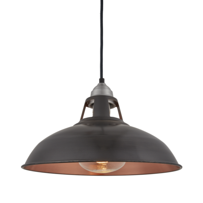The Old Factory Slotted 15-inch is available in Pewter, Copper & Pewter & Copper. This light is available as a heat lamp. Put the spotlight on your space with the help of our Old Factory lights, a versatile lighting solution that works with a variety of different décors. This light is available in a smaller Old Factory 12-inch available in BrassPewter & BrassPewterLight PewterCopper and Copper & Pewter. This light comes with 1m Black Round Fabric Flex.